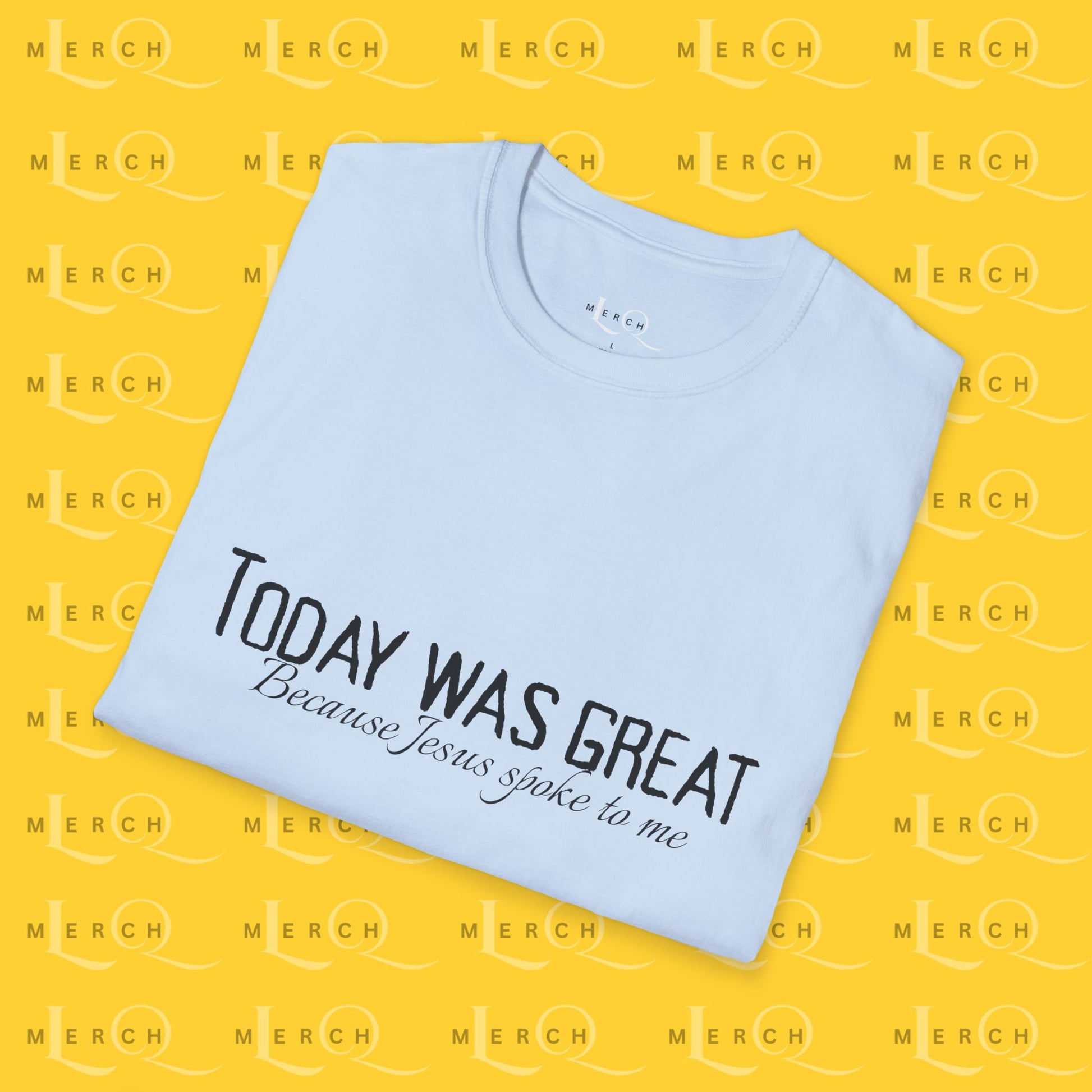 Wear your gratitude. This LQ Merch Unisex Softstyle Tee features the uplifting message “Today Was Great"! A simple yet powerful reminder to celebrate life’s little victories. Made from 100% ring-spun cotton, it’s lightweight, breathable, and perfect for all-day comfort.